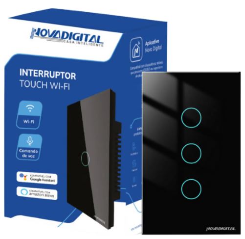INTERRUPTOR INTELIGENTE TOUCH WI-FI 3 BOTOES PRETO NOVA DIGITAL