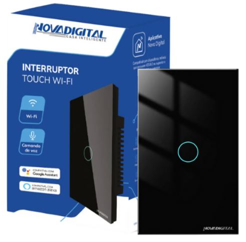 INTERRUPTOR INTELIGENTE TOUCH WI-FI SIMPLES PRETO NOVA DIGITAL